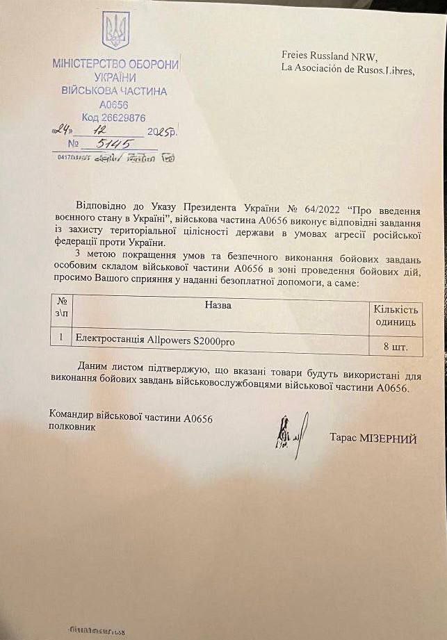 Благодарим активистов и сторонников Ассоциации Rusos Libres за поддержку Сибирского Батальона. На этот раз благодаря волонтерской помощи у нас появился тепловизор.